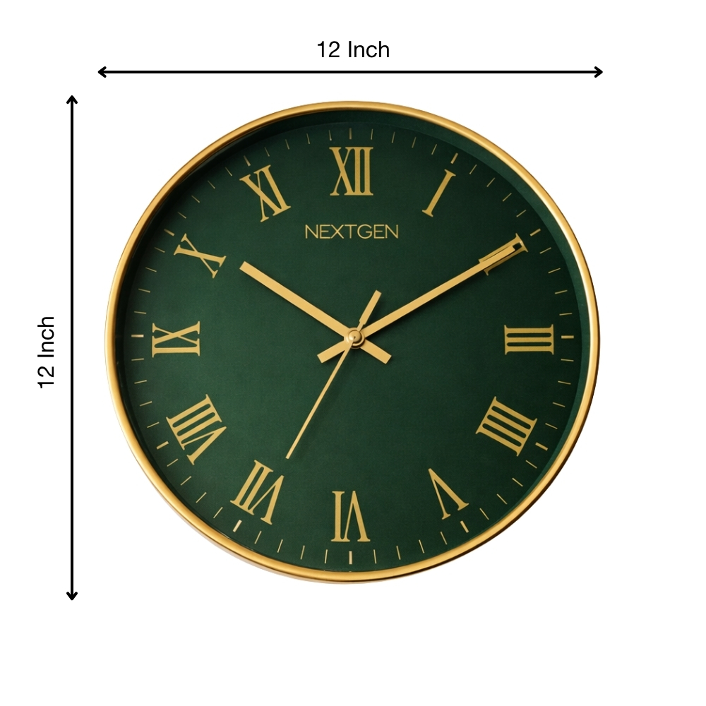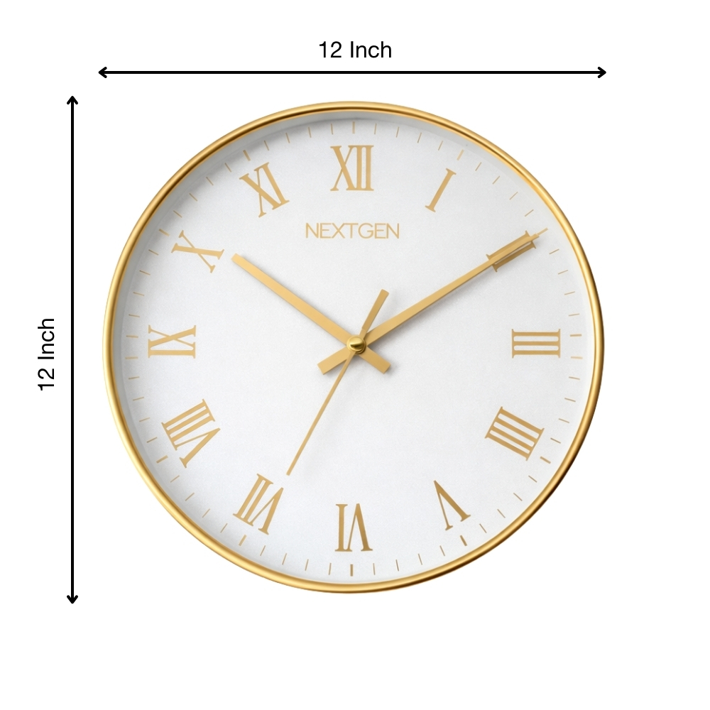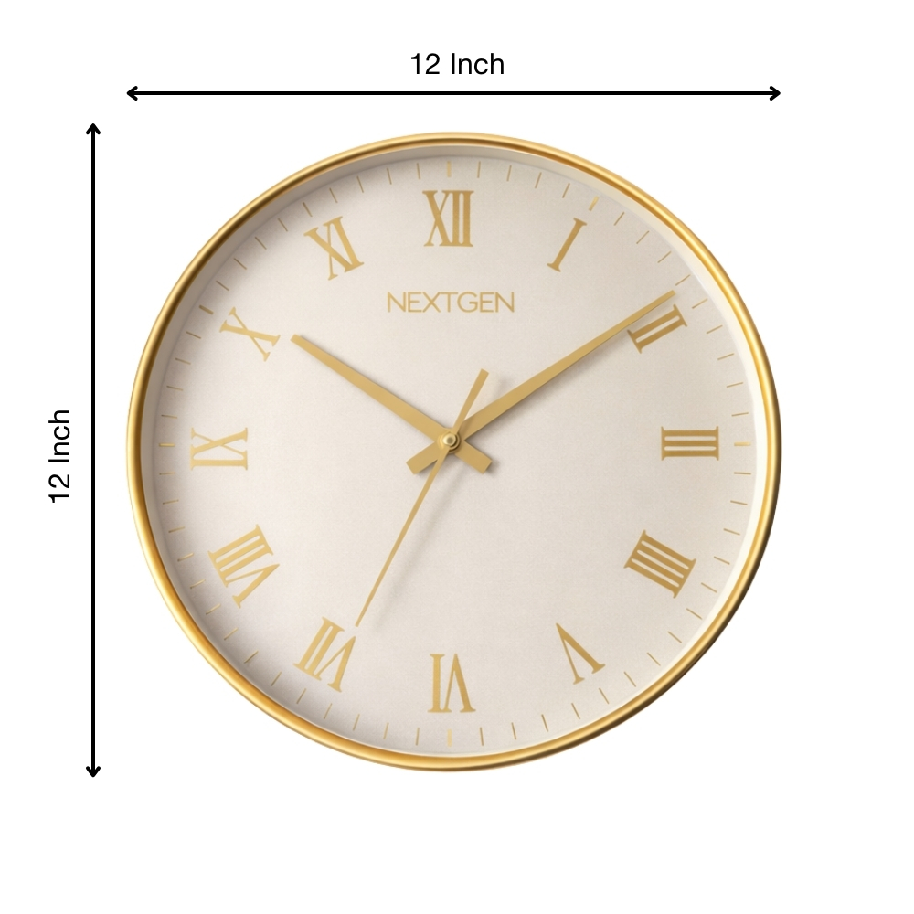 A premium 12-inch Golden wall clock featuring elegant Roman numerals, designed to enhance your décor while aligning with Astro-Numero-Vastu principles. Equipped with a silent, non-ticking movement and backed by a 1-year warranty.