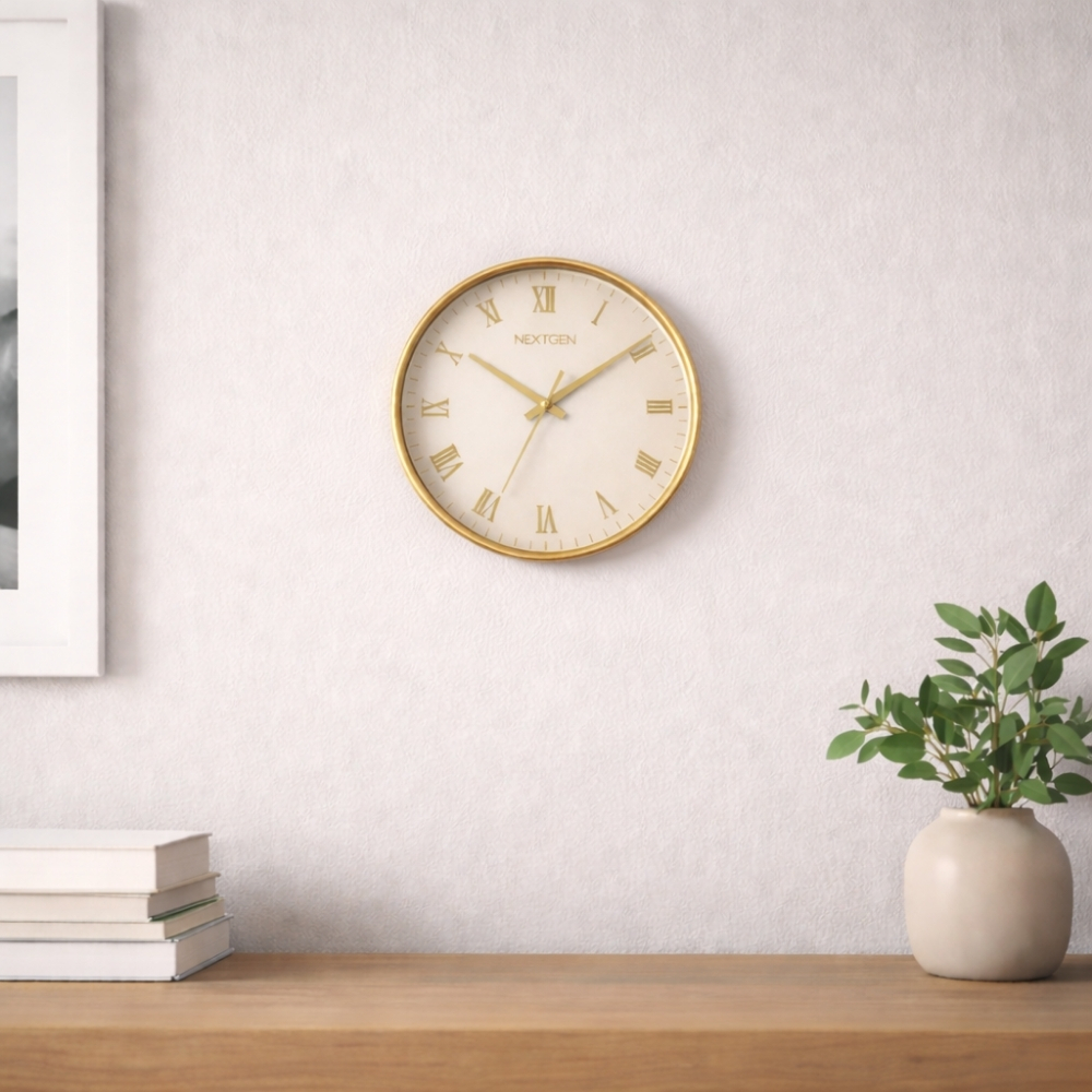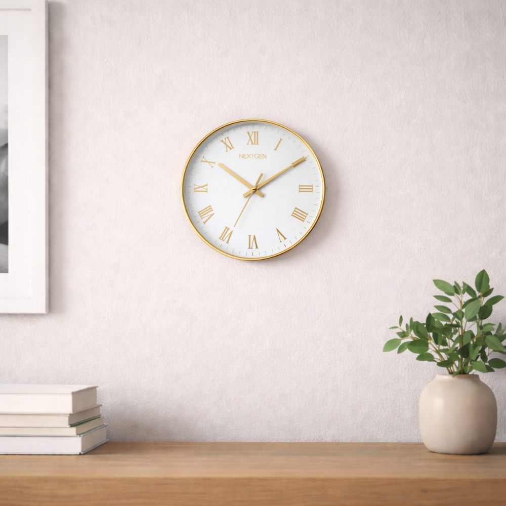 Designed with classic Roman digit markers, it offers a timeless and sophisticated look. Its refined golden finish adds a graceful presence to living rooms, offices, and workspaces.