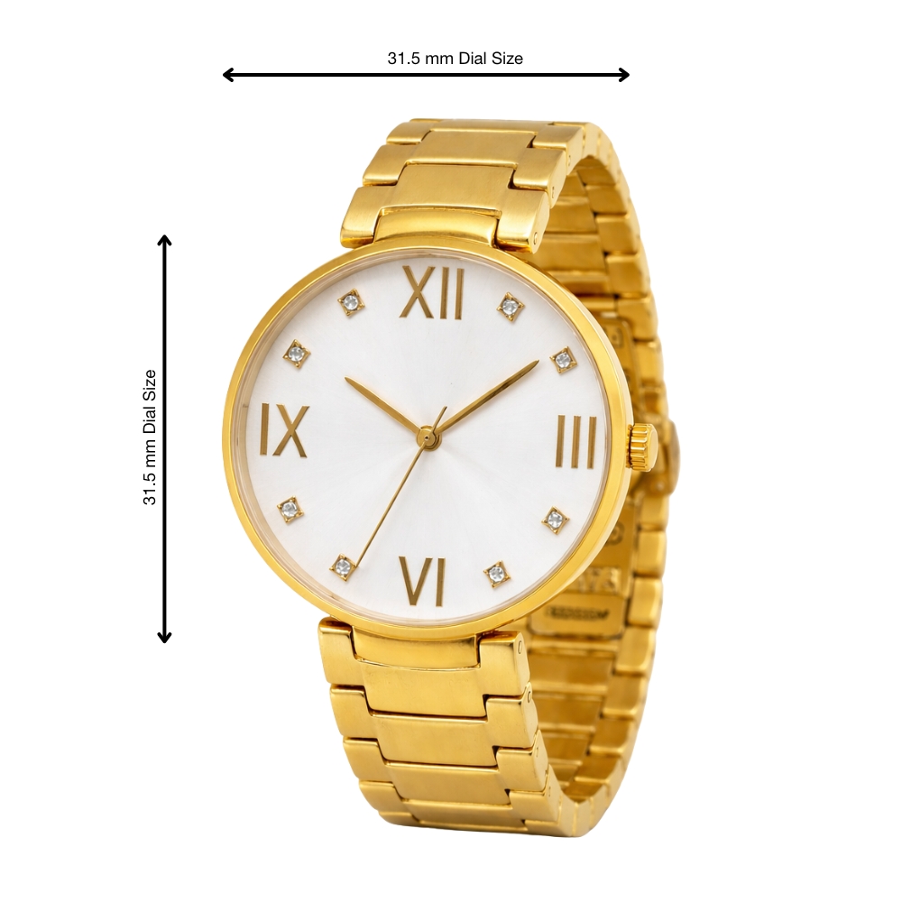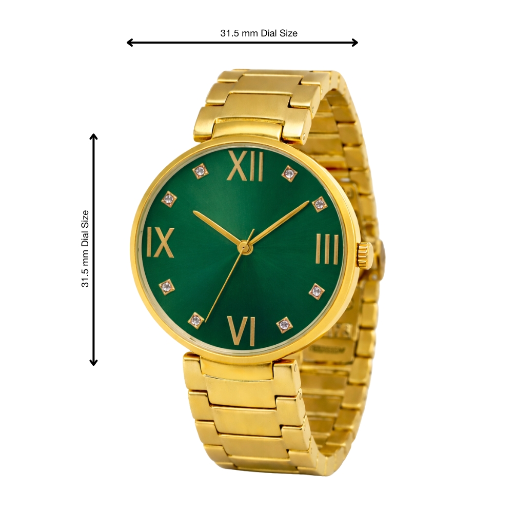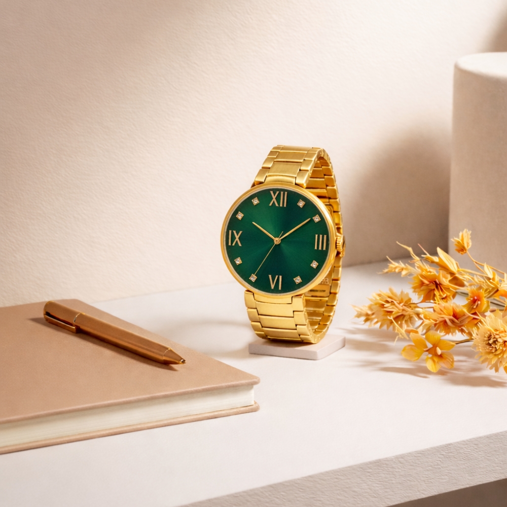 Crafted from full premium steel, it ensures durability, lasting shine, and a luxurious wrist presence. Available in Golden, White, Silver, and Green dial variations, it complements both traditional and contemporary outfits, making it ideal for daily wear and special occasions.