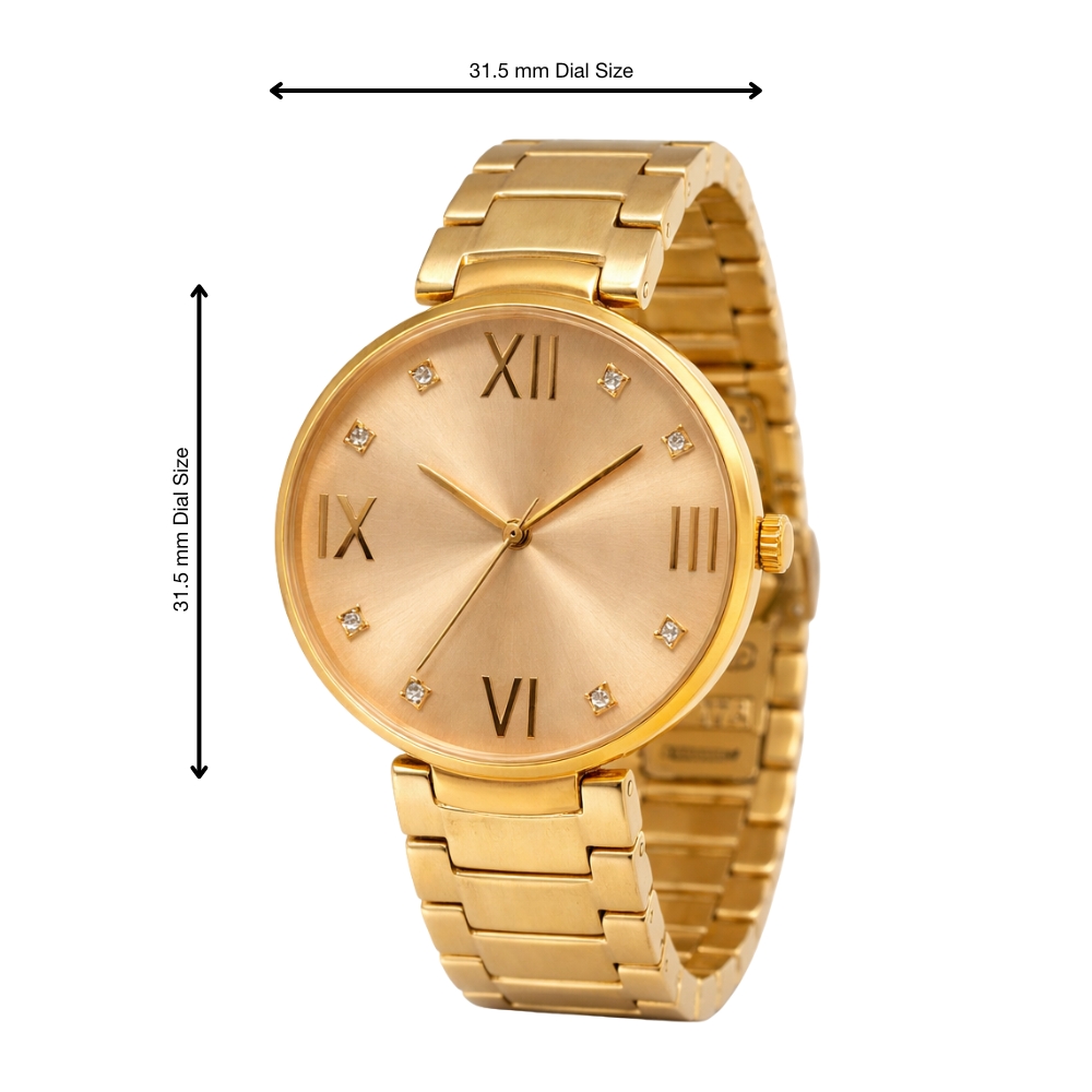 A premium Golden Astro wrist watch for women, crafted in full steel and designed to enhance elegance while aligning with Astro-inspired energy principles. Available in four elegant dial variations. Water resistant and backed by a 1-year movement warranty.