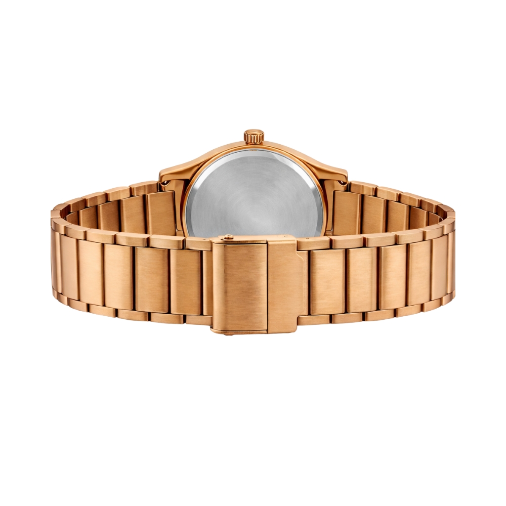 Crafted from full premium steel, it ensures durability, lasting shine, and a luxurious wrist presence. The elegant Rosegold finish adds a soft yet powerful statement, perfect for both everyday wear and special occasions.